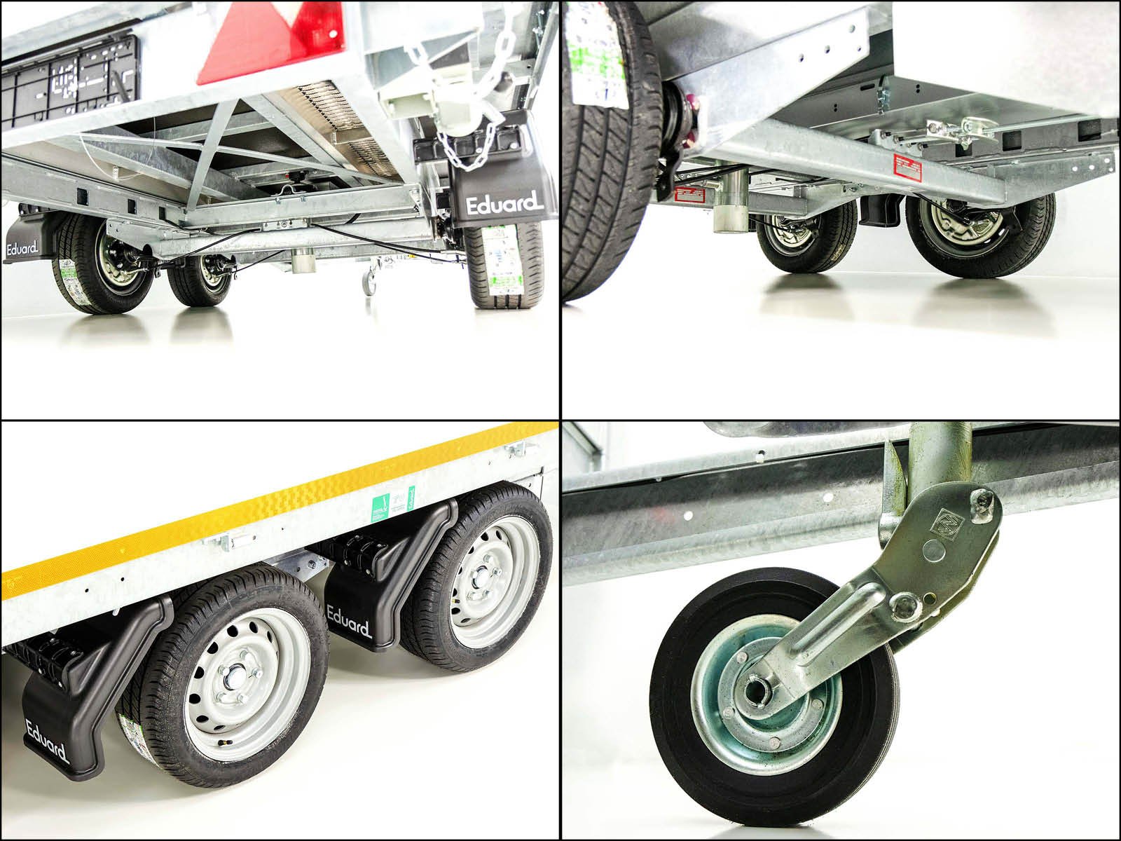 – Achse und Zugrohr komplett feuerverzinkt | Gummifederachse | V-Deichsel mit Zugkugelkupplung | Automatik-Schwerlaststützrad
