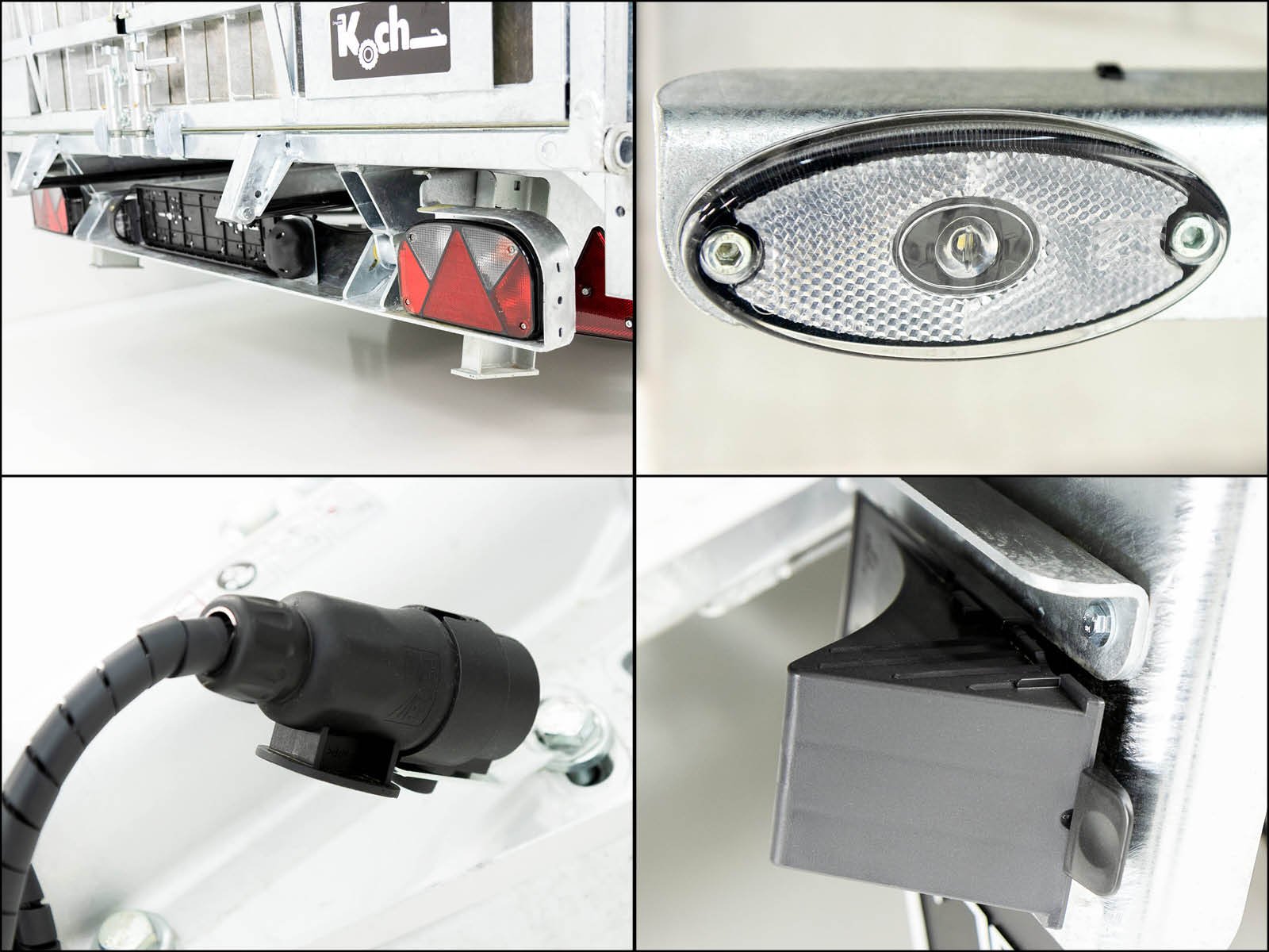 - 8 Zurrösen im Rahmenprofil, 8 Anbindehaken unter dem Fahrgestell